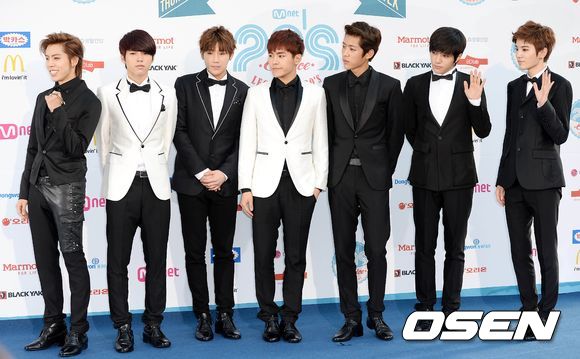그룹 인피니트가 블루카펫 행사를 하고 있다.