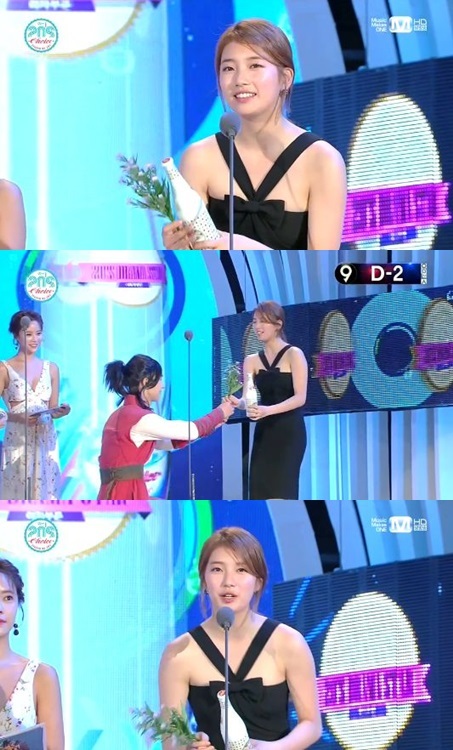 수지의 수상 무대에는 한 남성이 '구가의 서'의 강치의 의상을 입고 등장, 수지에게 꽃을 건네는 퍼포먼스를 펼쳐 눈길을 끌었다.