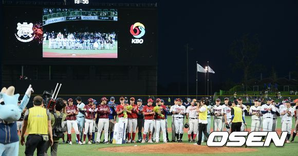 18일 오후 경북 포항시 포항야구장에서 '2013 퓨처스리그 올스타전'이 열렸다. 남부리그가 4-3으로 북부리그를 꺾고 승리를 거뒀다. 시상식 후 선수들이 박수를 치고 있다.