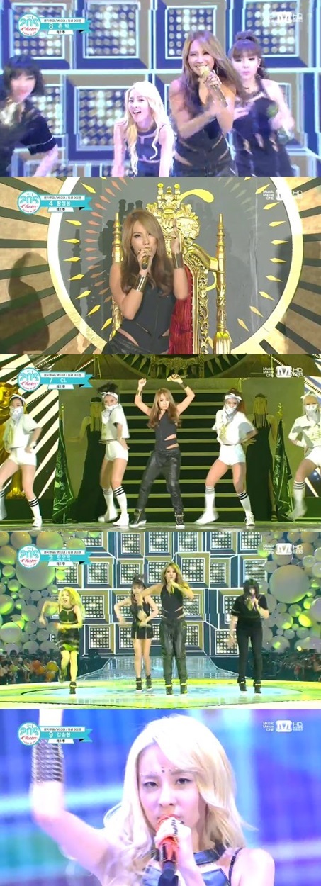 이어 씨엘은 의자 위에서 몸을 들썩이며 강렬한 카리스마를 뽐냈고 허리와 가슴 라인을 드러낸 블랙 의상으로 섹시미도 더해 완벽한 무대를 꾸며냈다. 특히 그는 상의를 탈의한 남성 댄서들과 꽉찬 무대를 꾸며 열기를 후끈 달아오르게 했다.