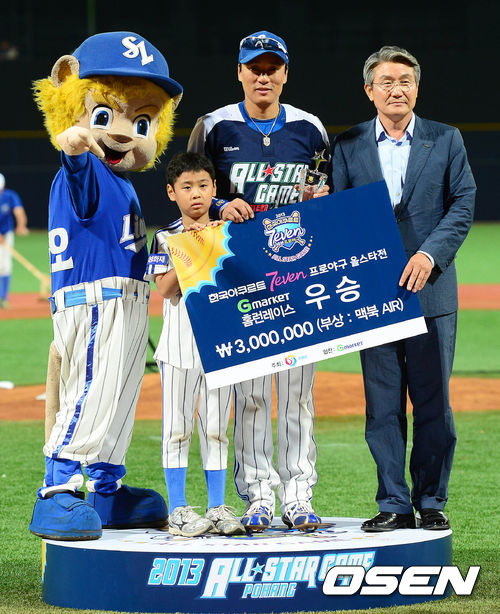 이날 홈런레이스에는 이승엽(삼성), 김현수(두산), 강민호(롯데), 나지완(KIA), 박병호(넥센), 정성훈(LG), 나성범(NC), 김대우(롯데)가 참여했다.