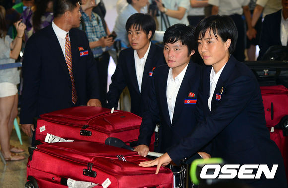 북한 여자 축구 대표팀이 국내에서 열리는 2013 동아시안컵 축구선수권대회에 출전하기 위해 18일 오후 인천공항을 통해 입국했다.