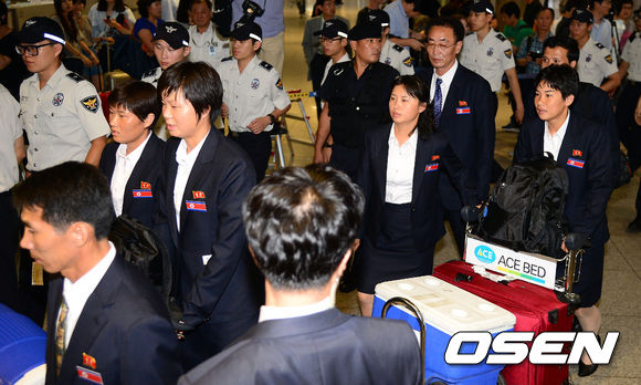 북한 여자 축구 대표팀이 국내에서 열리는 2013 동아시안컵 축구선수권대회에 출전하기 위해 18일 오후 인천공항을 통해 입국했다.