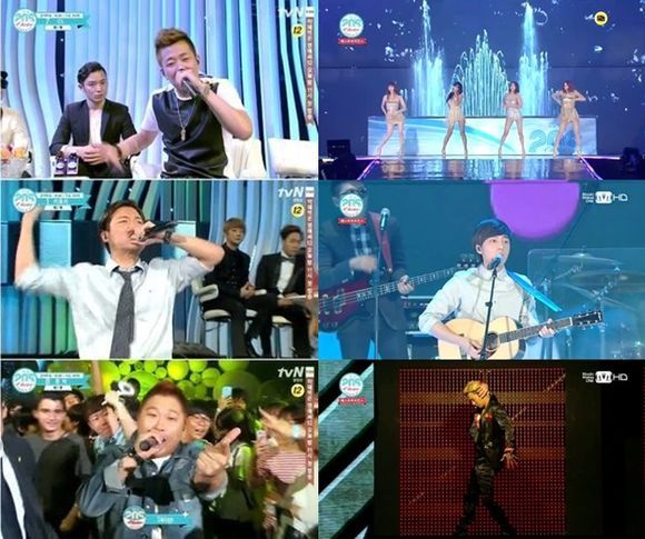 이날 무대에서는 다양한 콜라보 무대도 펼쳐졌다. 버벌진트는 팝핀현준, 범키와 호흡을 맞췄으며 걸스데이와 '여름 안에서'를 부르며 신선한 볼거리를 만들어냈다. '쇼미더머니2' 출연진은 방송에서와 같이 강렬한 랩의 향연을 펼치며 어깨를 들썩이는 무대를 펼쳤다. 또 로이킴과 데이브레이크는 가왕 조용필의 곡 '바운스'를 함께 부르며 감미로운 음색을 선보였다.