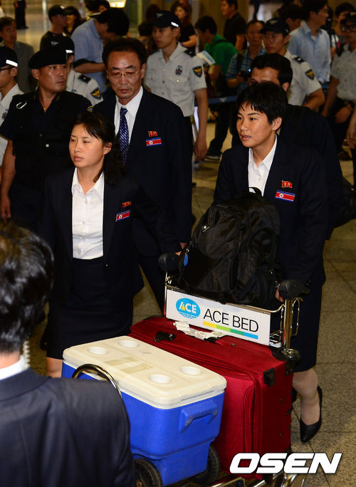 북한 여자 축구 대표팀이 국내에서 열리는 2013 동아시안컵 축구선수권대회에 출전하기 위해 18일 오후 인천공항을 통해 입국했다.