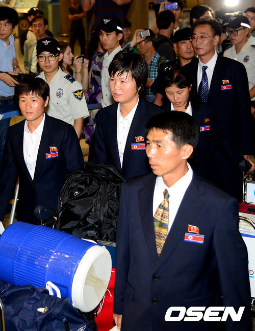 북한 여자 축구 대표팀이 국내에서 열리는 2013 동아시안컵 축구선수권대회에 출전하기 위해 18일 오후 인천공항을 통해 입국했다.
