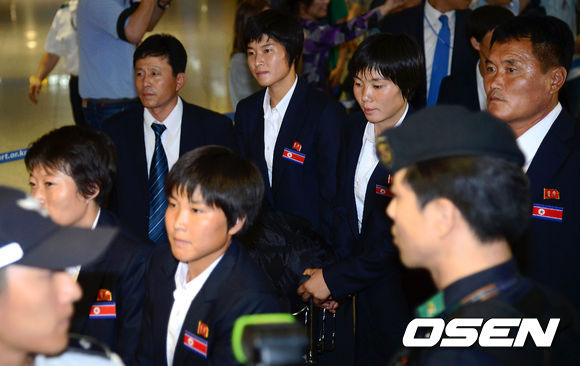 북한 여자 축구 대표팀이 국내에서 열리는 2013 동아시안컵 축구선수권대회에 출전하기 위해 18일 오후 인천공항을 통해 입국했다.
