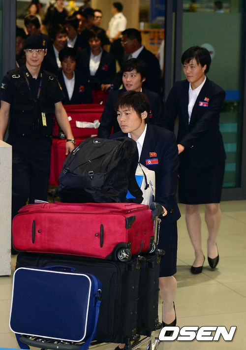 북한 여자 축구 대표팀이 국내에서 열리는 2013 동아시안컵 축구선수권대회에 출전하기 위해 18일 오후 인천공항을 통해 입국했다.