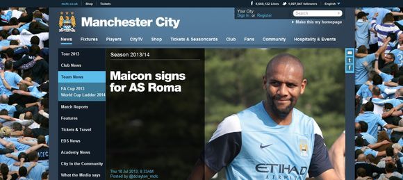 맨시티는 18일(이하 한국시간) 공식 홈페이지를 통해 마이콘이 AS로마와 계약했다고 발표했다. 맨시티는 "마이콘이 AS로마와 완전이적방식으로 계약했다"며 "마이콘은 지난 8월 맨시티에 입단했지만 1군에서 기회를 잡지 못하고 2012-2013시즌 단 11경기 출장에 그쳤다"고 설명했다.