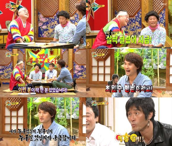 이에 강호동 역시 "오늘 손님 잘못 받았다"며 "이런 질문을 한 분이 딱 한 분 계시다. 최민수 씨"라고 말해 웃음을 자아냈다. 이어 자료화면으로 "해가, 별이, 달이, 자기 자신이 해인지 별인지 달인지 모르오"라고 말했던 최민수의 자료화면이 나와 웃음을 자아냈다.