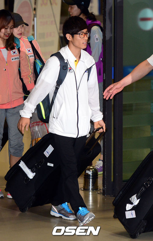 제27회 러시아 카잔 하계유니버시아드대회에서 금메달을 딴 양학선 선수가 입국장을 나서고 있다.