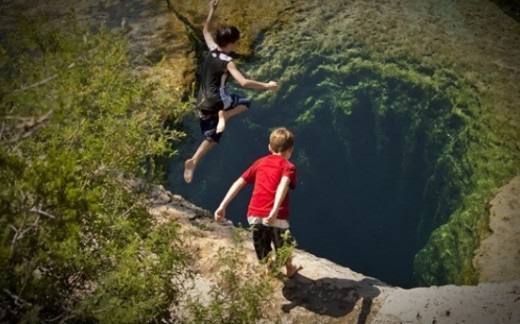 공개된 '야곱의 우물' 사진에는 두 명의 꼬마 아이들이 끝이 보이지 않는 깊은 수중 동굴로 뛰어내리려하는 모습이 담겨있다.