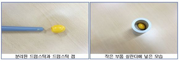 조사 결과, 접착력 약화로 인해 고무재질로 된 캡 부분이 플라스틱 드럼스틱에서 쉽게 분리되는 것으로 확인됐다. 분리된 고무재질의 노란색 캡이 사탕으로 오인될 수 있어, 영유아 삼킴사고나 질식사와 같은 위해를 끼칠 우려가 있는 것으로 나타났다.