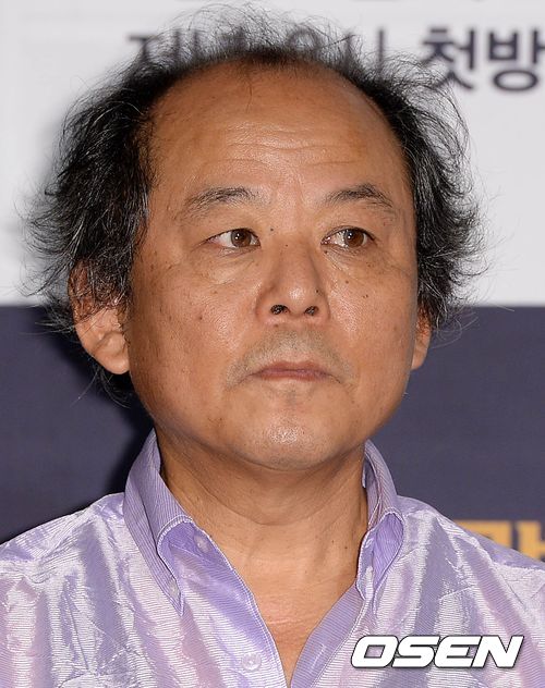 배우 김기천이 취재진의 질문을 듣고 있다.