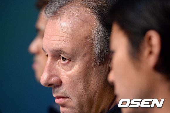 일본 자케로니 감독이 취재진의 질문을 듣고 있다.