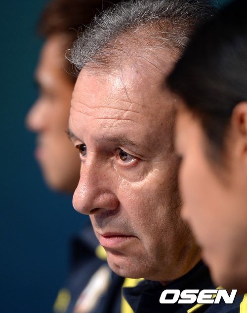 일본 자케로니 감독이 취재진의 질문을 듣고 있다.
