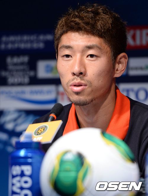 한국 하대성이 취재진의 질문에 답을 하고 있다.