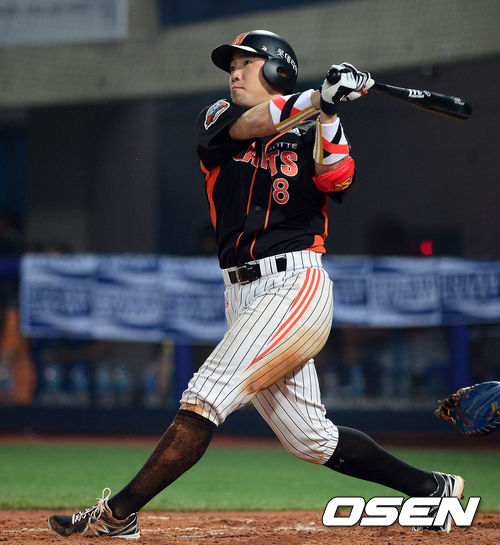 19일 오후 경북 포항시 포항야구장에서 열린 '2013 한국야쿠르트 세븐 프로야구 올스타전' 경기 7회초 2사 2루 전준우가 투런포를 치고 있다.