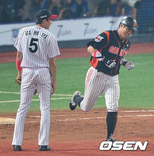 19일 오후 경북 포항시 포항야구장에서 '2013 한국야쿠르트 세븐 프로야구 올스타전'이 열렸다. 7회초 이스턴리그 공격 2사 2루 상황 롯데 전준우가 역전 좌월 투런포를 날리고 그라운드를 돌고 있다.