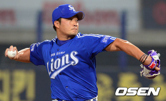 19일 오후 경북 포항시 포항야구장에서 열린 '2013 한국야쿠르트 세븐 프로야구 올스타전' 경기 9회말 마운드에 올라온 오승환이 역투하고 있다.