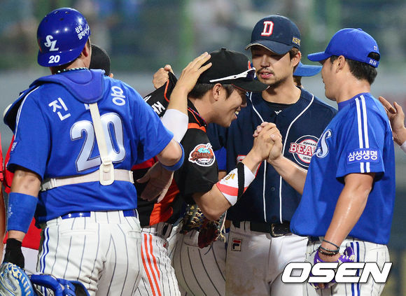 19일 오후 경북 포항시 포항야구장에서 열린 '2013 한국야쿠르트 세븐 프로야구 올스타전' 경기 종료후 전준우가 동료들의 축하를 받고 있다.