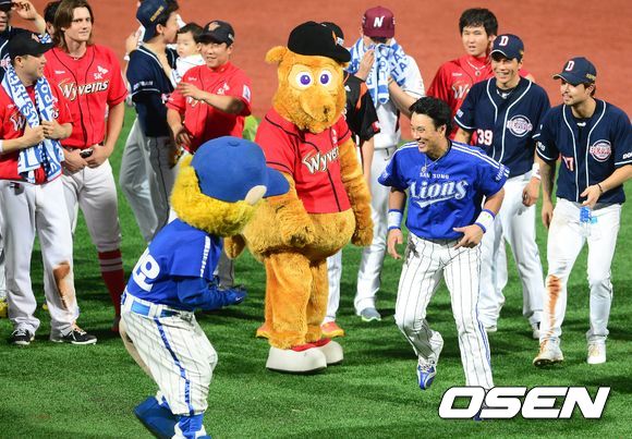 이스턴 이승엽이 승리팀상을 받기 위해 시상대로 향하고 있다./jpnews@osen.co.kr