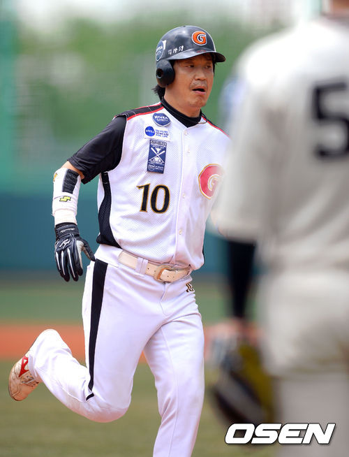 20일 오후 서울 구의야구장에서 열린 '제4회 니베아 맨 컵 전국생활체육 야구대회' 8강 조마조마와 GMB의 경기. 2회초 1사 만루 GMB 방석진이 역전 인사이드 더 파크 홈런을 날리고 홈으로 질주하고 있다.