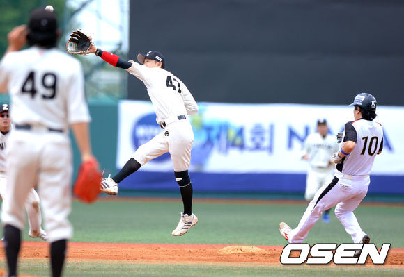 20일 오후 서울 구의야구장에서 열린 '제4회 니베아 맨 컵 전국생활체육 야구대회' 8강 조마조마와 GMB의 경기. 1회초 무사 1루 GMB 서용진의 타석때 1루 주자 방석진의 도루때 조마조마 2루수 장진 감독이 공을 놓치고 있다