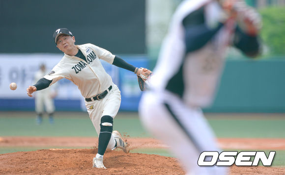 20일 오후 서울 구의야구장에서 열린 '제4회 니베아 맨 컵 전국생활체육 야구대회' 8강 조마조마와 GMB의 경기. 3회말 조마조마 장진이 역투하고 있다.