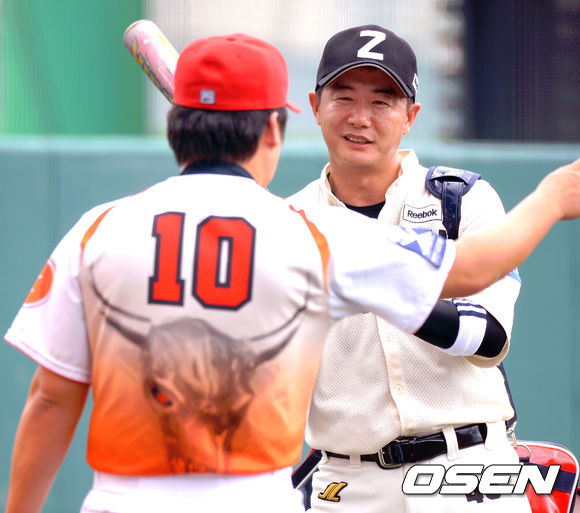 경기종료후 조마조마 장진이 다음 경기를 치르는 외인구단 김현철을 격려하고 있다./soul1014@osen.co.kr
