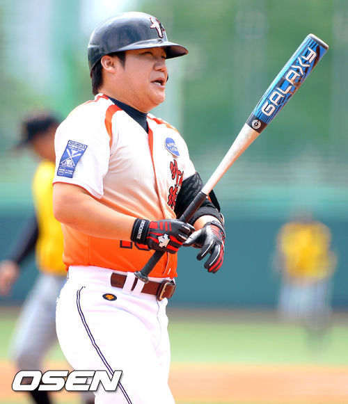 20일 오후 서울 구의야구장에서 열린 '제4회 니베아 맨 컵 전국생활체육 야구대회' 8강 챔피언과 외인구단의 경기. 3회초 외인구단 김현철이 삼진아웃 당한뒤 아쉬워하고 있다.