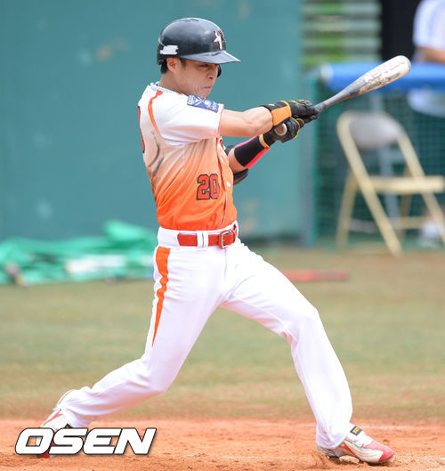 20일 오후 서울 구의야구장에서 열린 '제4회 니베아 맨 컵 전국생활체육 야구대회' 8강 챔피언과 외인구단의 경기. 4회말 1사 외인구단 경동호가 안타를 날리고 있다