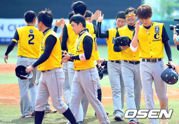 경기종료 후 챔피언스 선수들이 승리의 기쁨을 나누고 있다. /soul1014@osen.co.kr