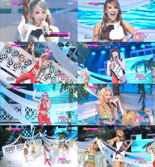 2NE1은 20일 오후 방송된 MBC '쇼 음악중심'에서 곡 '폴링 인 러브(Falling in love)'의 무대를 꾸몄다.