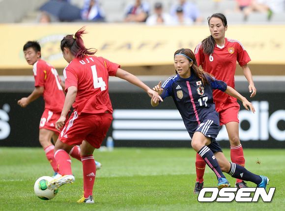 전반 일본 오기미가 중국 수비진을 돌파하고 있다.