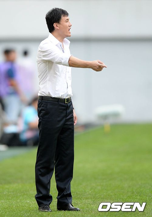 전반 중국 하오 웨이 감독이 선수들에게 작전을 지시하고 있다.