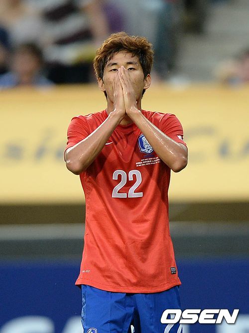 전반 윤일록이 찬스를 놓치고 아쉬워하고 있다.