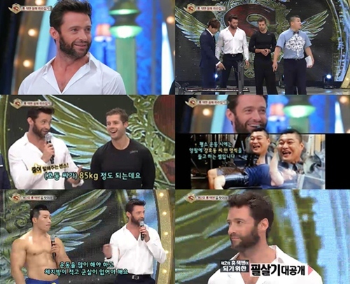 휴 잭맨은 "평상시에는 강호동 씨를 양팔에 한 명씩 들고 할 정도로 운동을 한다"고 말해 놀라움을 자아냈다.