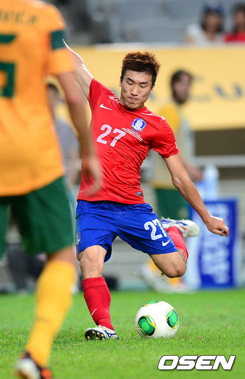 경기 전반 한국 고요한이 슈팅을 시도하고 있다.