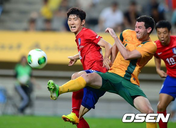 초반 한국은 중원싸움에서 우위를 보이며 주도권을 쥐었다. 주장 하대성과 이명주가 지키는 허리라인이 탄탄했다. 한국은 수차례 결정적인 크로스를 올리며 호주골문을 위협했다. 전반 10분 윤일록은 강력한 슈팅을 날렸으나 수비수를 맞고 튀어나왔다. 불발됐지만 호주의 간담을 서늘하게 한 슈팅이었다. 윤일록은 전반 15분에도 역습을 틈타 결정적 슈팅기회를 날렸지만 골키퍼 선방에 막혔다.