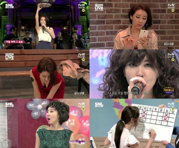 김완선은 지난 20일 방송된 tvN 'SNL 코리아'에서 여러 가지의 콩트, 그리고 자신의 히트곡 등을 통해 원조 섹시퀸의 면모를 제대로 선보였다.