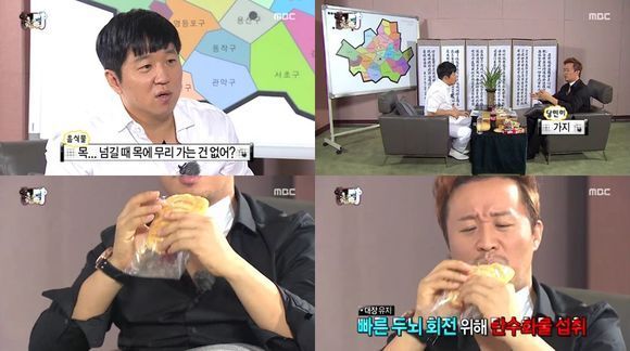 정준하는 미션 중 빠른 머리 회전을 돕기 위해 빵을 폭풍흡입했고 동료들의 걱정 속에서 "(무리가) 가지"라고 답하면서도 열심히 빵을 먹는 정준하 진격의 먹방 진수를 드러내 보는 이들을 폭소케 했다.