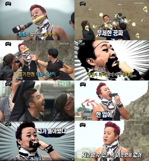놀란 멤버들은 당황해 “(이가) 나간다”며 말리려 했지만, 정준하는 굴하지 않고 드릴을 작동시켰다. 걱정도 잠시, 옥수수 알들은 돌아가는 드릴을 통해 정준하의 입속으로 우수수 떨어졌고, 명불허전 식신은 눈 깜짝할 새 옥수수 하나를 완벽하게 흡입했다.