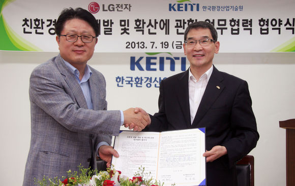LG전자가 한국환경산업기술원과 협력해 친환경 경영 활동을 강화한다. LG전자와 한국환경산업기술원은 19일 오후 ‘친환경 제품 개발 및 확산을 위한 업무협력 양해각서(MOU)’를 체결했다고 밝혔다.
