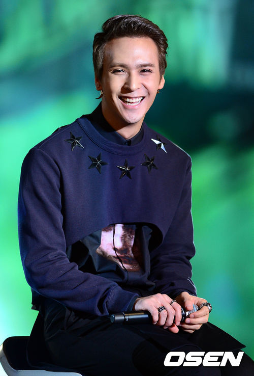 콘서트에 앞서 열린 기자회견에서 비스트 손동운이 미소를 짓고 있다.