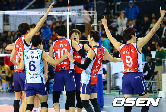 하지만 우승후보 1순위로 손꼽히는 대한항공의 저력은 역시 대단했다. 대한항공은 돌아온 신영수를 필두로 공재학, 곽승석이 공격을 이끌며 김학민의 부재를 말끔히 지워냈다. 삼성화재는 박철우와 고준용, 이선규가 분전했지만 불안한 리시브에 발목을 잡혔다.