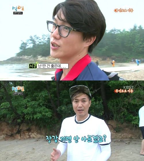 21일 방송된 KBS 2TV '해피선데이-1박2일'에서는 지난주에 이어 전남 신안 임자도에서 '올드보이 스카우트 여름캠프'를 떠난 멤버들의 모습이 그려진 가운데, 두 멤버 사이의 신경전이 펼쳐졌다.
