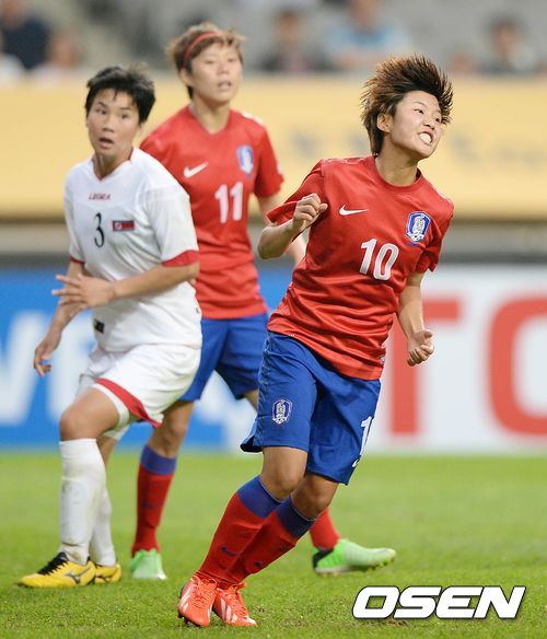 후반 슈팅이 빗나간 지소연이 아쉬워하고 있다.