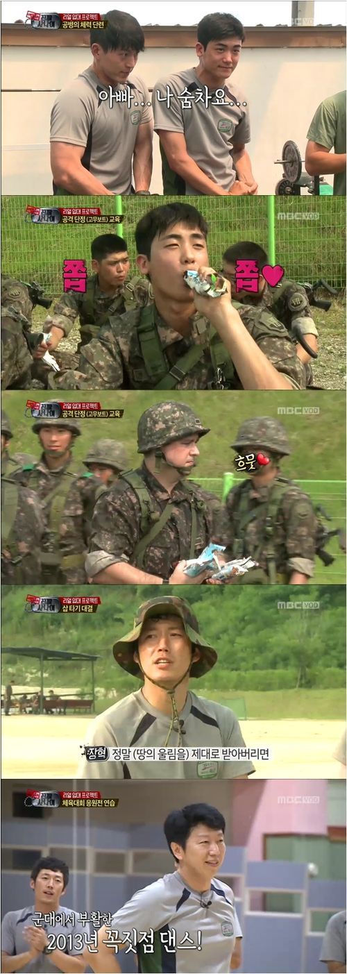 어깨부상 속에서도 하차를 하지 않고 묵묵히 군복무를 하는 김수로. 그는 지난 21일 방송에서 ‘꼭짓점댄스’를 장병들에게 가르치면서 어깨부상 이후 겪었던 마음 고생을 한순간에 털어버렸다. 워낙 열정적으로 군복무에 임했던 그이기에 몸상태가 좋지 않아 열외가 되는 상황을 힘들어했다. 그런 그가 환하게 웃으면서 ‘꼭짓점댄스’를 전파하는 모습은 짠했다. 이 장면은 그가 이 프로그램에 대한 애정이 얼마나 깊으며, 군복무를 얼마나 열정적으로 하고 싶어하는지를 알 수 있는 대목이었다.