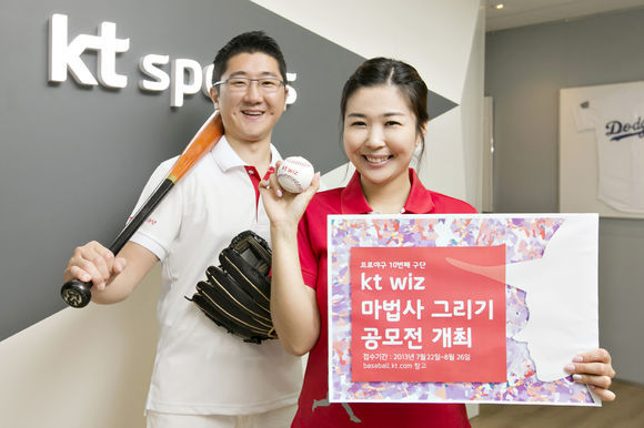 프로야구 10번째 야구단 kt 위즈 (대표이사 권사일)는 야구단 명칭을 홍보하고 캐릭터인 마법사(wizard)를 알리기 위해 7월 22일부터 8월 26일까지 'kt wiz 마법사 그리기 공모전'을 개최한다고 22일(월) 밝혔다.